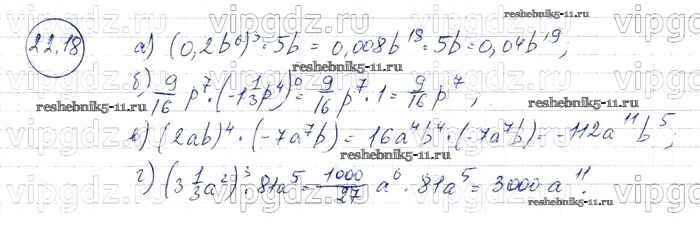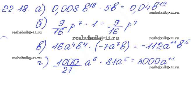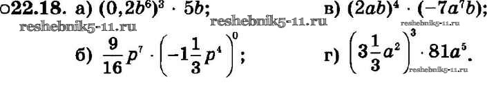Готовая домашняя работа с ответами по Алгебре за 7 класс Мордкович, Александрова, Мишустина, Тульчинская Задачник Базовый уровень Часть 2 Мнемозина 2013 ФГОС - § 22. Умножение одночленов. Возведение одночлена в натуральную степень 18