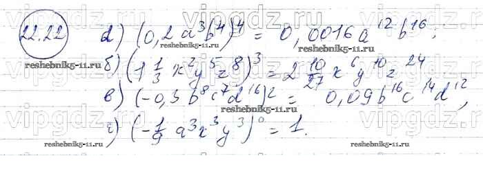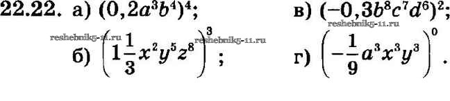 Готовая домашняя работа с ответами по Алгебре за 7 класс Мордкович, Александрова, Мишустина, Тульчинская Задачник Базовый уровень Часть 2 Мнемозина 2013 ФГОС - § 22. Умножение одночленов. Возведение одночлена в натуральную степень 22