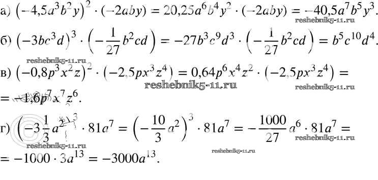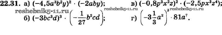 Готовая домашняя работа с ответами по Алгебре за 7 класс Мордкович, Александрова, Мишустина, Тульчинская Задачник Базовый уровень Часть 2 Мнемозина 2013 ФГОС - § 22. Умножение одночленов. Возведение одночлена в натуральную степень 31
