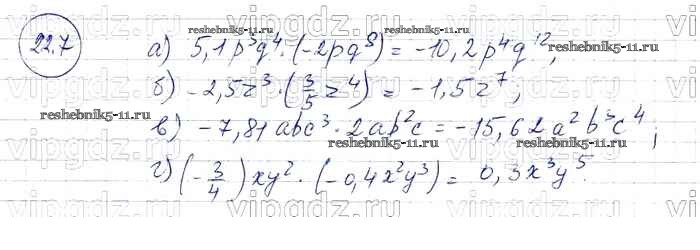 Готовая домашняя работа с ответами по Алгебре за 7 класс Мордкович, Александрова, Мишустина, Тульчинская Задачник Базовый уровень Часть 2 Мнемозина 2013 ФГОС - § 22. Умножение одночленов. Возведение одночлена в натуральную степень 7