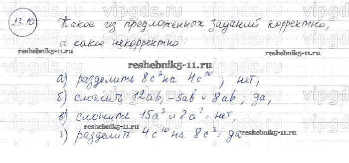 Готовая домашняя работа с ответами по Алгебре за 7 класс Мордкович, Александрова, Мишустина, Тульчинская Задачник Базовый уровень Часть 2 Мнемозина 2013 ФГОС - § 23. Деление одночлена на одночлен 10
