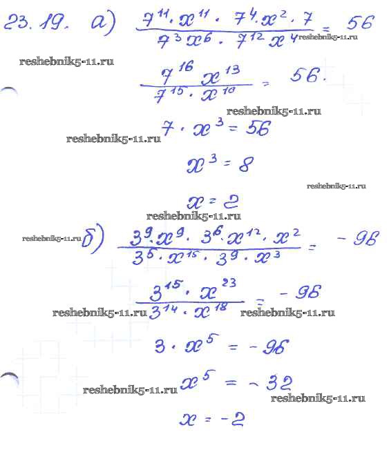 Готовая домашняя работа с ответами по Алгебре за 7 класс Мордкович, Александрова, Мишустина, Тульчинская Задачник Базовый уровень Часть 2 Мнемозина 2013 ФГОС - § 23. Деление одночлена на одночлен 19