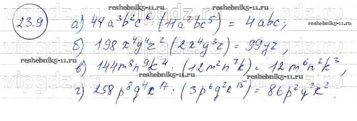 Готовая домашняя работа с ответами по Алгебре за 7 класс Мордкович, Александрова, Мишустина, Тульчинская Задачник Базовый уровень Часть 2 Мнемозина 2013 ФГОС - § 23. Деление одночлена на одночлен 9