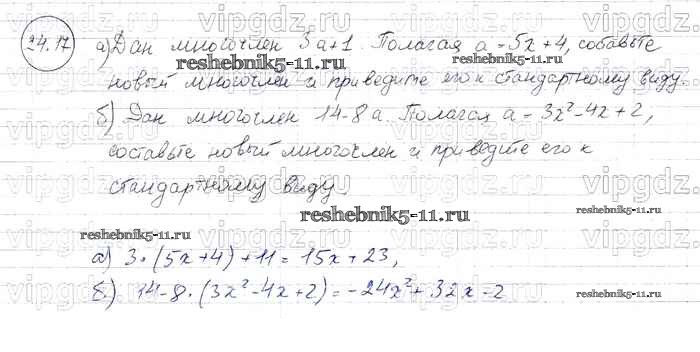 Готовая домашняя работа с ответами по Алгебре за 7 класс Мордкович, Александрова, Мишустина, Тульчинская Задачник Базовый уровень Часть 2 Мнемозина 2013 ФГОС - § 24. Основные понятия 17