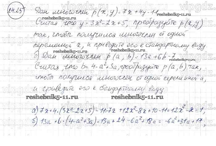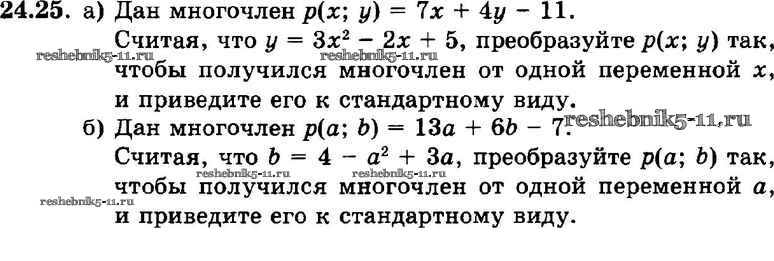 Готовая домашняя работа с ответами по Алгебре за 7 класс Мордкович, Александрова, Мишустина, Тульчинская Задачник Базовый уровень Часть 2 Мнемозина 2013 ФГОС - § 24. Основные понятия 25