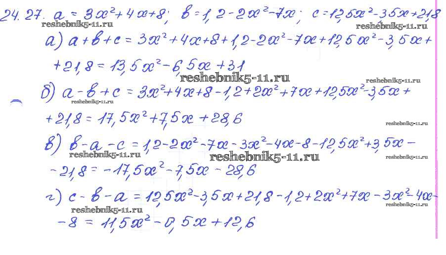 Готовая домашняя работа с ответами по Алгебре за 7 класс Мордкович, Александрова, Мишустина, Тульчинская Задачник Базовый уровень Часть 2 Мнемозина 2013 ФГОС - § 24. Основные понятия 27