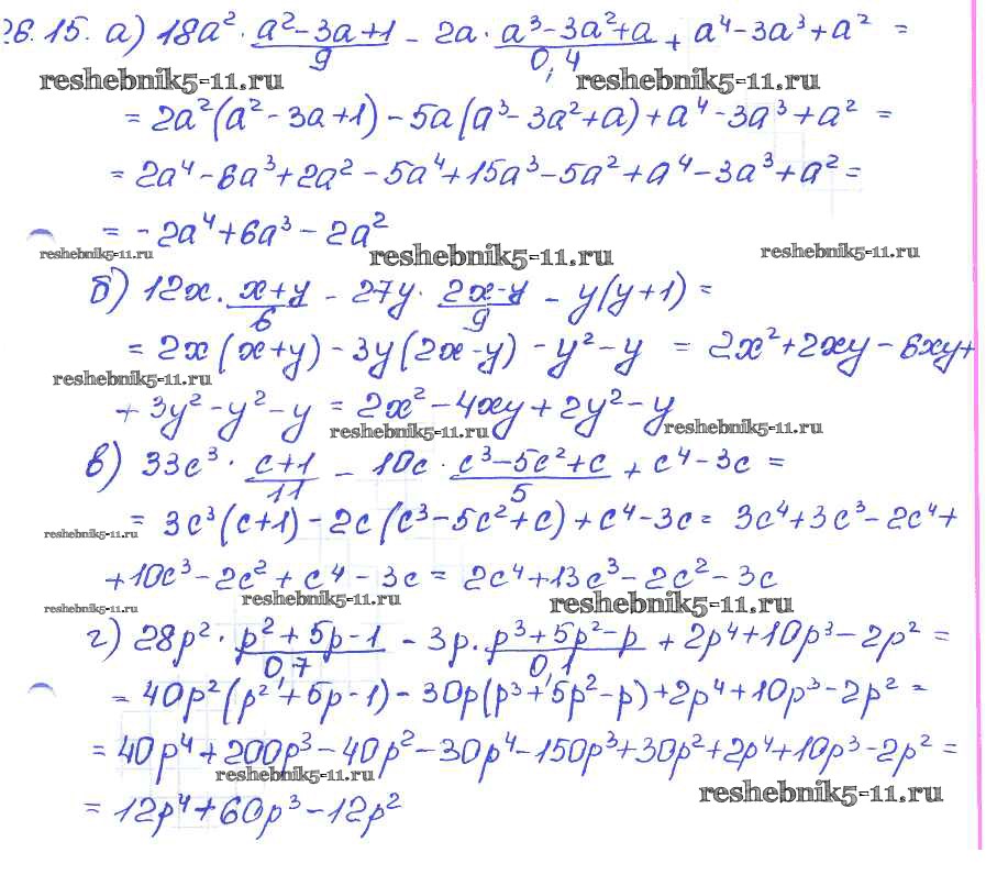Готовая домашняя работа с ответами по Алгебре за 7 класс Мордкович, Александрова, Мишустина, Тульчинская Задачник Базовый уровень Часть 2 Мнемозина 2013 ФГОС - § 26. Умножение многочлена на одночлен 15