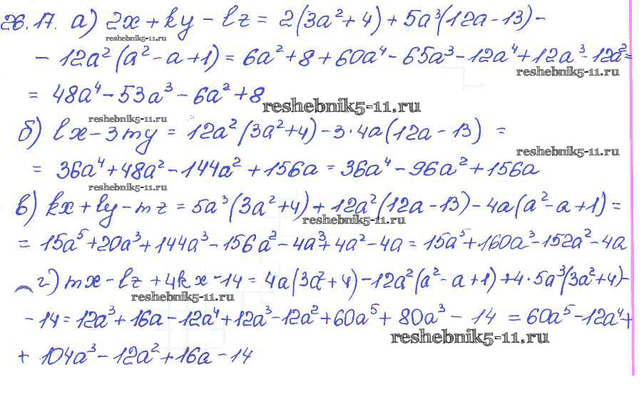 Готовая домашняя работа с ответами по Алгебре за 7 класс Мордкович, Александрова, Мишустина, Тульчинская Задачник Базовый уровень Часть 2 Мнемозина 2013 ФГОС - § 26. Умножение многочлена на одночлен 17