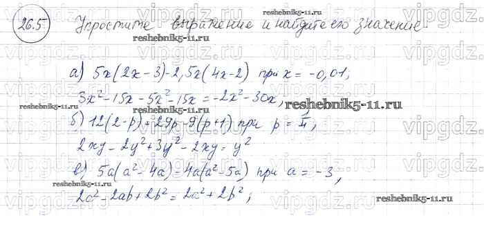 Готовая домашняя работа с ответами по Алгебре за 7 класс Мордкович, Александрова, Мишустина, Тульчинская Задачник Базовый уровень Часть 2 Мнемозина 2013 ФГОС - § 26. Умножение многочлена на одночлен 5