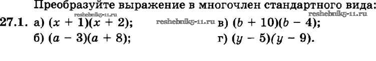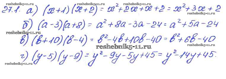 Готовая домашняя работа с ответами по Алгебре за 7 класс Мордкович, Александрова, Мишустина, Тульчинская Задачник Базовый уровень Часть 2 Мнемозина 2013 ФГОС - § 27. Умножение многочлена на многочлен 1