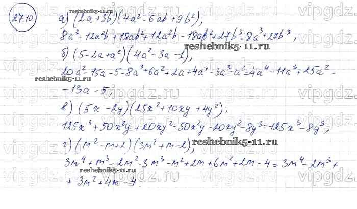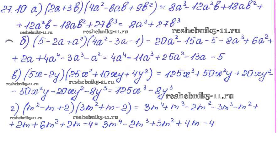 Готовая домашняя работа с ответами по Алгебре за 7 класс Мордкович, Александрова, Мишустина, Тульчинская Задачник Базовый уровень Часть 2 Мнемозина 2013 ФГОС - § 27. Умножение многочлена на многочлен 10
