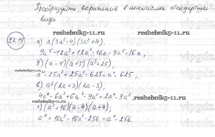 Готовая домашняя работа с ответами по Алгебре за 7 класс Мордкович, Александрова, Мишустина, Тульчинская Задачник Базовый уровень Часть 2 Мнемозина 2013 ФГОС - § 27. Умножение многочлена на многочлен 18