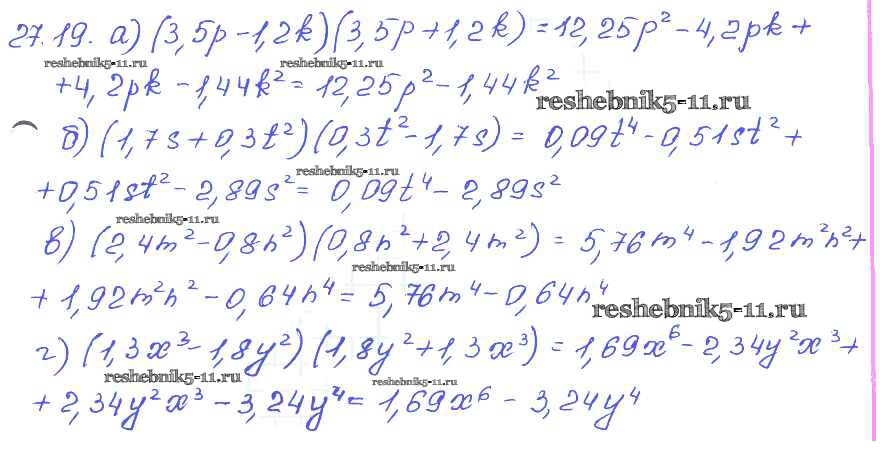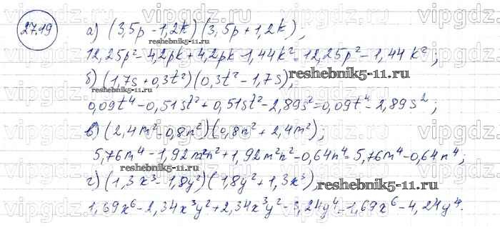 Готовая домашняя работа с ответами по Алгебре за 7 класс Мордкович, Александрова, Мишустина, Тульчинская Задачник Базовый уровень Часть 2 Мнемозина 2013 ФГОС - § 27. Умножение многочлена на многочлен 19