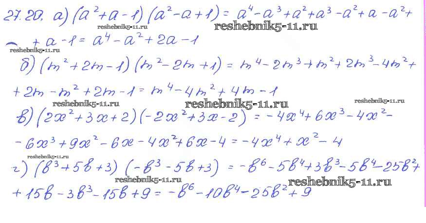 Готовая домашняя работа с ответами по Алгебре за 7 класс Мордкович, Александрова, Мишустина, Тульчинская Задачник Базовый уровень Часть 2 Мнемозина 2013 ФГОС - § 27. Умножение многочлена на многочлен 20