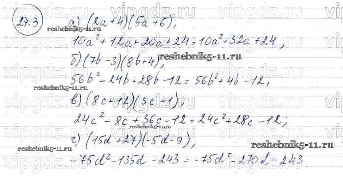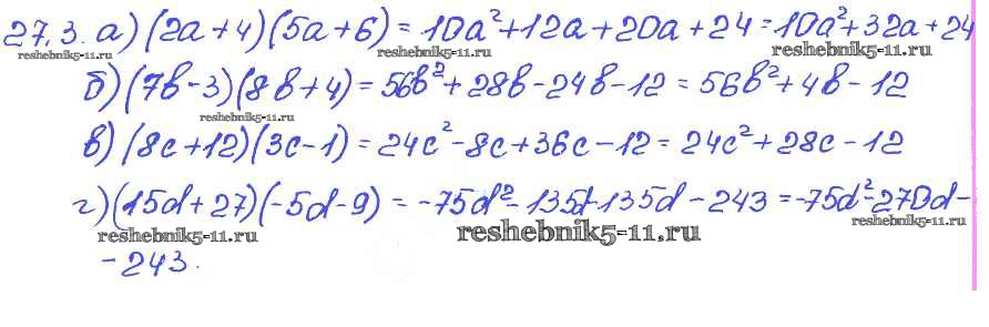 Готовая домашняя работа с ответами по Алгебре за 7 класс Мордкович, Александрова, Мишустина, Тульчинская Задачник Базовый уровень Часть 2 Мнемозина 2013 ФГОС - § 27. Умножение многочлена на многочлен 3