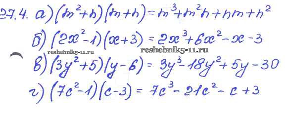 Готовая домашняя работа с ответами по Алгебре за 7 класс Мордкович, Александрова, Мишустина, Тульчинская Задачник Базовый уровень Часть 2 Мнемозина 2013 ФГОС - § 27. Умножение многочлена на многочлен 4