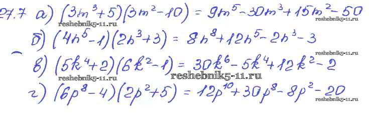 Готовая домашняя работа с ответами по Алгебре за 7 класс Мордкович, Александрова, Мишустина, Тульчинская Задачник Базовый уровень Часть 2 Мнемозина 2013 ФГОС - § 27. Умножение многочлена на многочлен 7