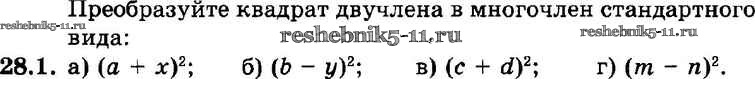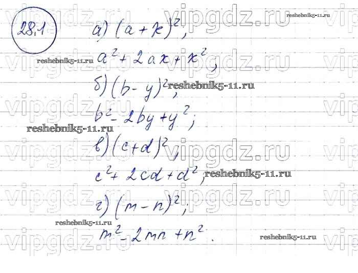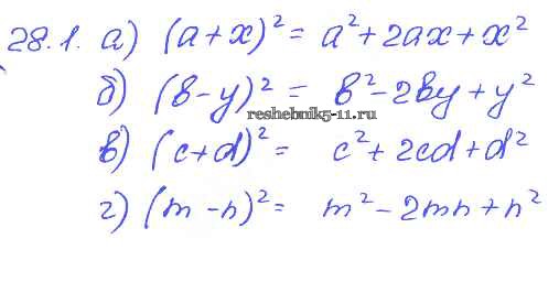 Готовая домашняя работа с ответами по Алгебре за 7 класс Мордкович, Александрова, Мишустина, Тульчинская Задачник Базовый уровень Часть 2 Мнемозина 2013 ФГОС - § 28. Формулы сокращенного умножения 1