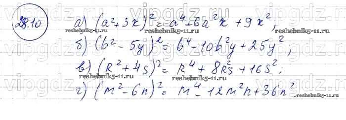 Готовая домашняя работа с ответами по Алгебре за 7 класс Мордкович, Александрова, Мишустина, Тульчинская Задачник Базовый уровень Часть 2 Мнемозина 2013 ФГОС - § 28. Формулы сокращенного умножения 10