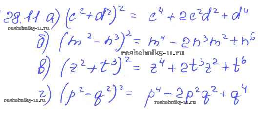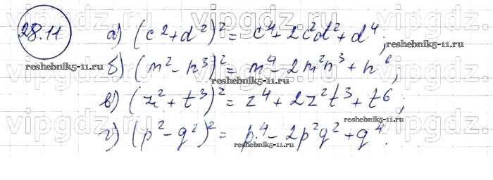 Готовая домашняя работа с ответами по Алгебре за 7 класс Мордкович, Александрова, Мишустина, Тульчинская Задачник Базовый уровень Часть 2 Мнемозина 2013 ФГОС - § 28. Формулы сокращенного умножения 11