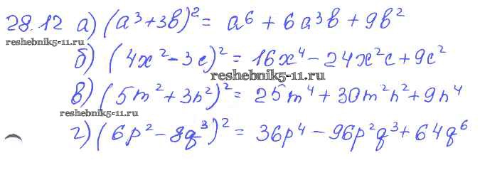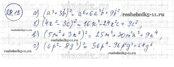 Готовая домашняя работа с ответами по Алгебре за 7 класс Мордкович, Александрова, Мишустина, Тульчинская Задачник Базовый уровень Часть 2 Мнемозина 2013 ФГОС - § 28. Формулы сокращенного умножения 12