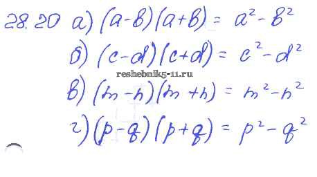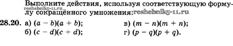 Готовая домашняя работа с ответами по Алгебре за 7 класс Мордкович, Александрова, Мишустина, Тульчинская Задачник Базовый уровень Часть 2 Мнемозина 2013 ФГОС - § 28. Формулы сокращенного умножения 20