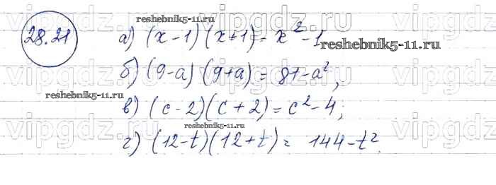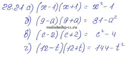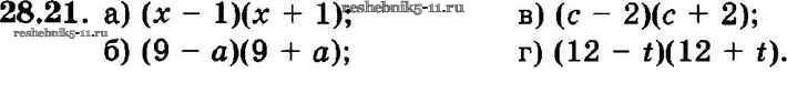 Готовая домашняя работа с ответами по Алгебре за 7 класс Мордкович, Александрова, Мишустина, Тульчинская Задачник Базовый уровень Часть 2 Мнемозина 2013 ФГОС - § 28. Формулы сокращенного умножения 21