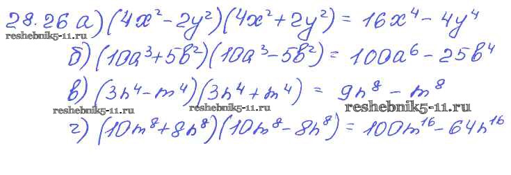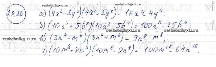 Готовая домашняя работа с ответами по Алгебре за 7 класс Мордкович, Александрова, Мишустина, Тульчинская Задачник Базовый уровень Часть 2 Мнемозина 2013 ФГОС - § 28. Формулы сокращенного умножения 26