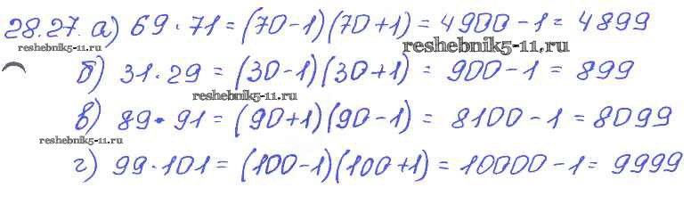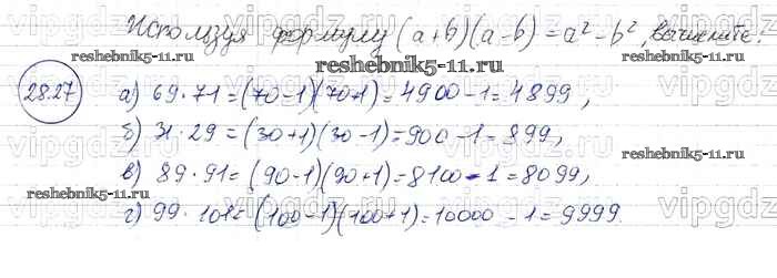 Готовая домашняя работа с ответами по Алгебре за 7 класс Мордкович, Александрова, Мишустина, Тульчинская Задачник Базовый уровень Часть 2 Мнемозина 2013 ФГОС - § 28. Формулы сокращенного умножения 27