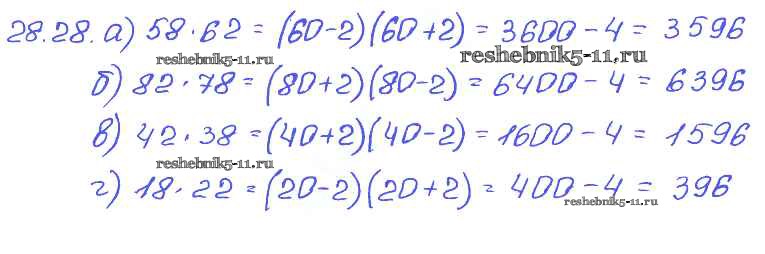 Готовая домашняя работа с ответами по Алгебре за 7 класс Мордкович, Александрова, Мишустина, Тульчинская Задачник Базовый уровень Часть 2 Мнемозина 2013 ФГОС - § 28. Формулы сокращенного умножения 28