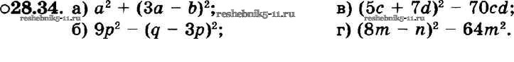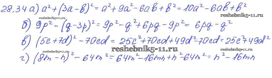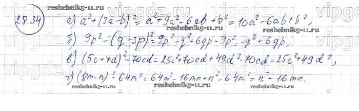 Готовая домашняя работа с ответами по Алгебре за 7 класс Мордкович, Александрова, Мишустина, Тульчинская Задачник Базовый уровень Часть 2 Мнемозина 2013 ФГОС - § 28. Формулы сокращенного умножения 34
