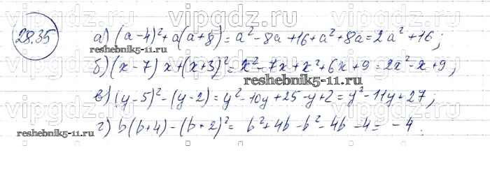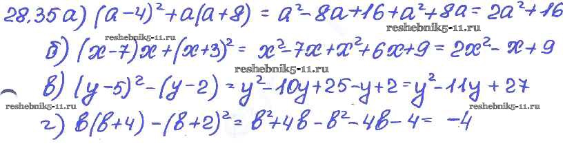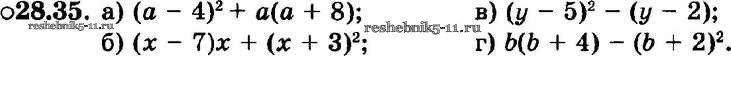 Готовая домашняя работа с ответами по Алгебре за 7 класс Мордкович, Александрова, Мишустина, Тульчинская Задачник Базовый уровень Часть 2 Мнемозина 2013 ФГОС - § 28. Формулы сокращенного умножения 35