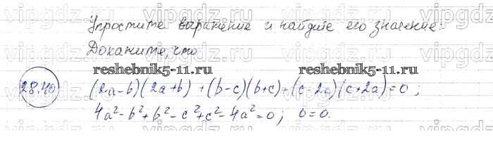Готовая домашняя работа с ответами по Алгебре за 7 класс Мордкович, Александрова, Мишустина, Тульчинская Задачник Базовый уровень Часть 2 Мнемозина 2013 ФГОС - § 28. Формулы сокращенного умножения 40