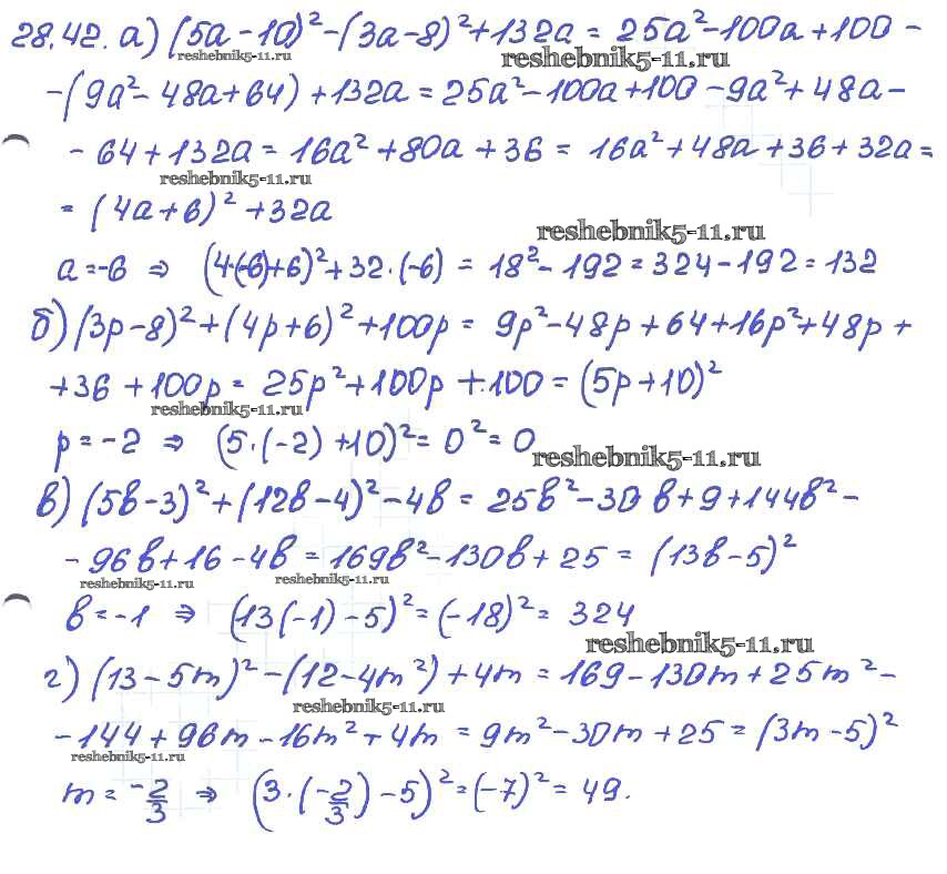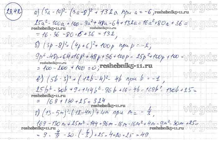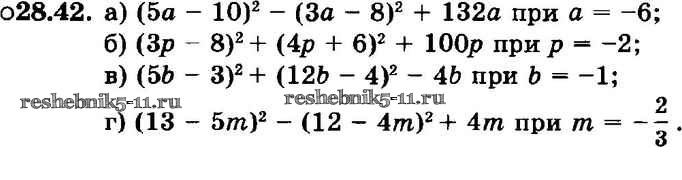 Готовая домашняя работа с ответами по Алгебре за 7 класс Мордкович, Александрова, Мишустина, Тульчинская Задачник Базовый уровень Часть 2 Мнемозина 2013 ФГОС - § 28. Формулы сокращенного умножения 42