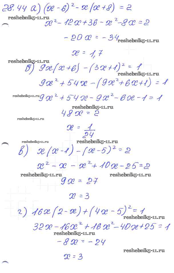 Готовая домашняя работа с ответами по Алгебре за 7 класс Мордкович, Александрова, Мишустина, Тульчинская Задачник Базовый уровень Часть 2 Мнемозина 2013 ФГОС - § 28. Формулы сокращенного умножения 44