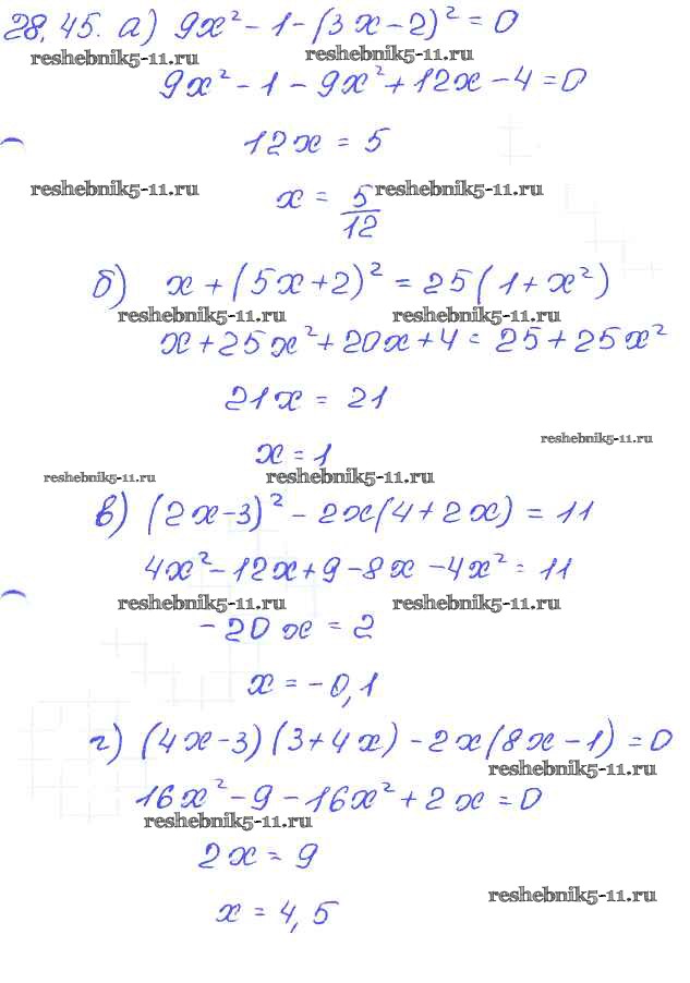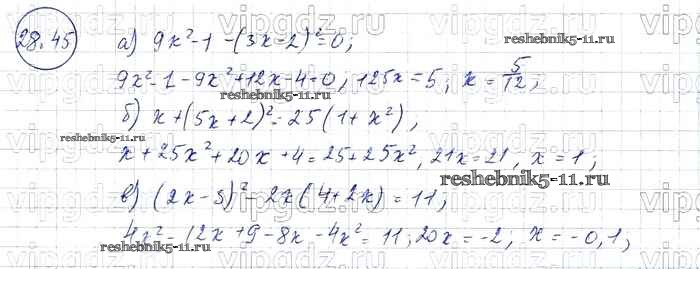Готовая домашняя работа с ответами по Алгебре за 7 класс Мордкович, Александрова, Мишустина, Тульчинская Задачник Базовый уровень Часть 2 Мнемозина 2013 ФГОС - § 28. Формулы сокращенного умножения 45