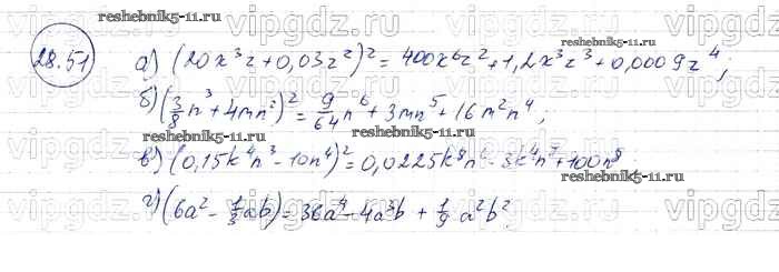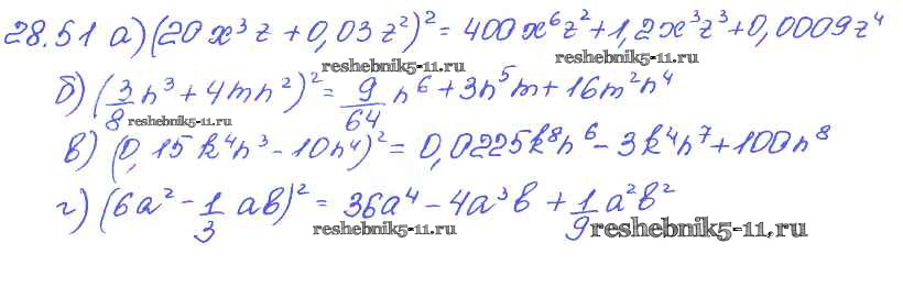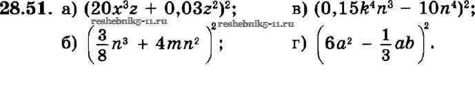 Готовая домашняя работа с ответами по Алгебре за 7 класс Мордкович, Александрова, Мишустина, Тульчинская Задачник Базовый уровень Часть 2 Мнемозина 2013 ФГОС - § 28. Формулы сокращенного умножения 51