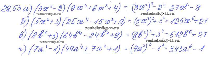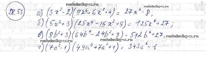 Готовая домашняя работа с ответами по Алгебре за 7 класс Мордкович, Александрова, Мишустина, Тульчинская Задачник Базовый уровень Часть 2 Мнемозина 2013 ФГОС - § 28. Формулы сокращенного умножения 53