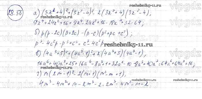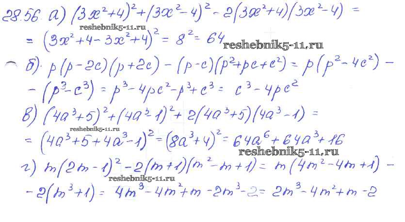 Готовая домашняя работа с ответами по Алгебре за 7 класс Мордкович, Александрова, Мишустина, Тульчинская Задачник Базовый уровень Часть 2 Мнемозина 2013 ФГОС - § 28. Формулы сокращенного умножения 56