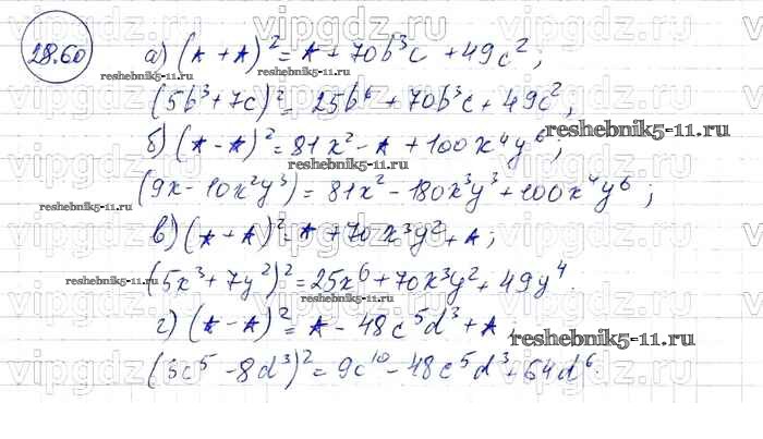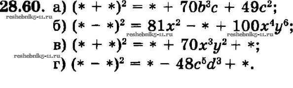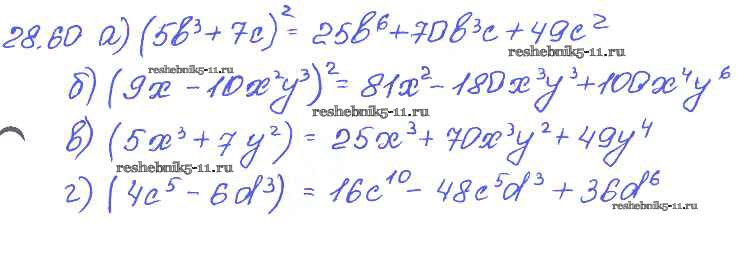 Готовая домашняя работа с ответами по Алгебре за 7 класс Мордкович, Александрова, Мишустина, Тульчинская Задачник Базовый уровень Часть 2 Мнемозина 2013 ФГОС - § 28. Формулы сокращенного умножения 60