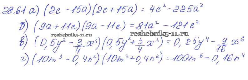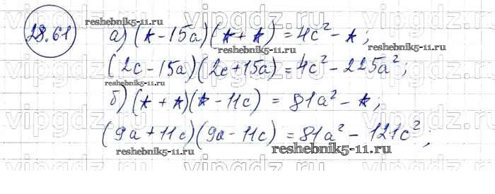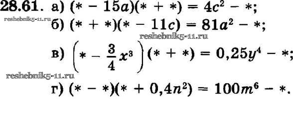 Готовая домашняя работа с ответами по Алгебре за 7 класс Мордкович, Александрова, Мишустина, Тульчинская Задачник Базовый уровень Часть 2 Мнемозина 2013 ФГОС - § 28. Формулы сокращенного умножения 61