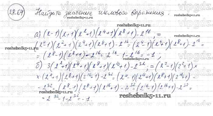 Готовая домашняя работа с ответами по Алгебре за 7 класс Мордкович, Александрова, Мишустина, Тульчинская Задачник Базовый уровень Часть 2 Мнемозина 2013 ФГОС - § 28. Формулы сокращенного умножения 64