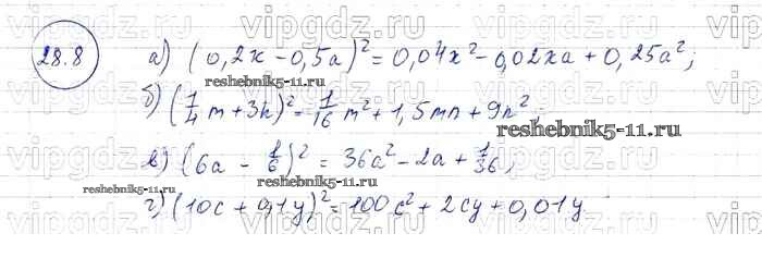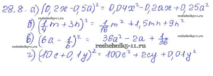 Готовая домашняя работа с ответами по Алгебре за 7 класс Мордкович, Александрова, Мишустина, Тульчинская Задачник Базовый уровень Часть 2 Мнемозина 2013 ФГОС - § 28. Формулы сокращенного умножения 8