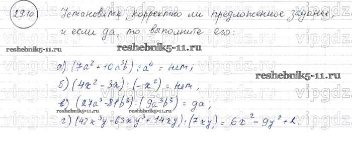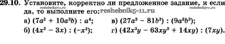 Готовая домашняя работа с ответами по Алгебре за 7 класс Мордкович, Александрова, Мишустина, Тульчинская Задачник Базовый уровень Часть 2 Мнемозина 2013 ФГОС - § 29. Деление многочлена на одночлен 10