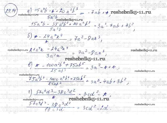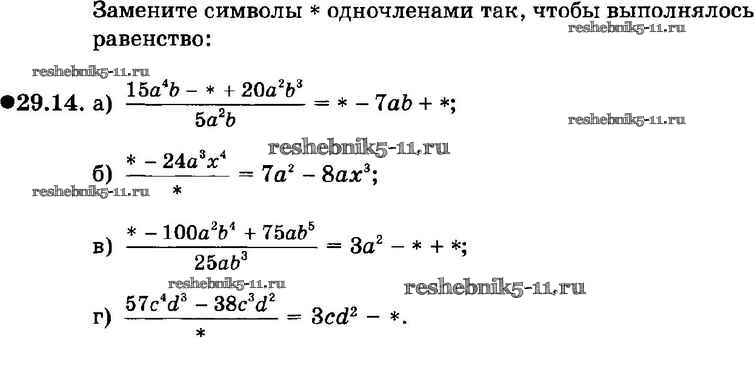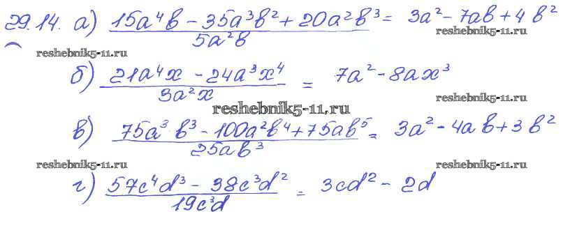 Готовая домашняя работа с ответами по Алгебре за 7 класс Мордкович, Александрова, Мишустина, Тульчинская Задачник Базовый уровень Часть 2 Мнемозина 2013 ФГОС - § 29. Деление многочлена на одночлен 14