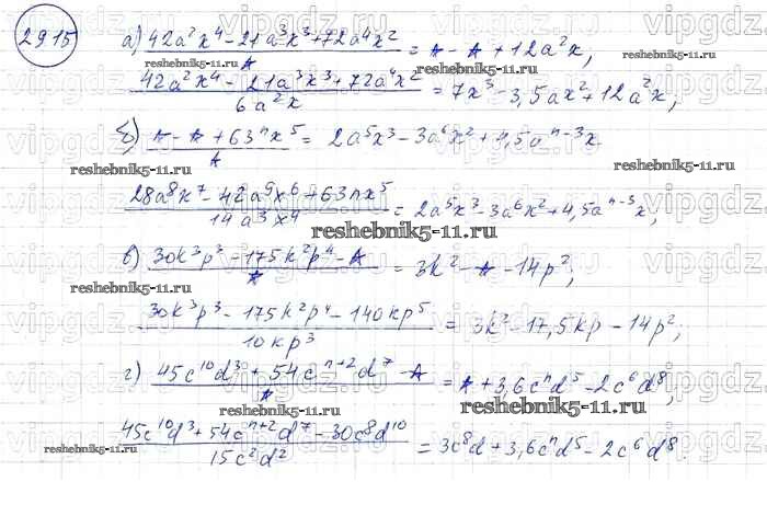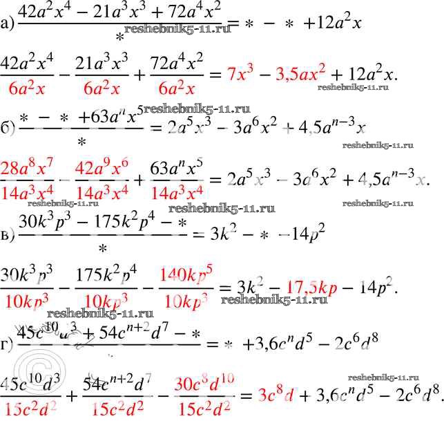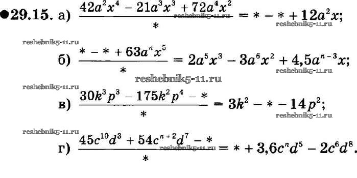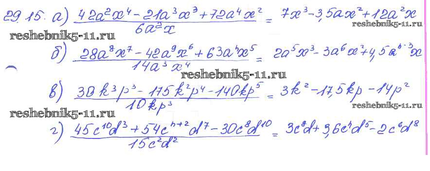 Готовая домашняя работа с ответами по Алгебре за 7 класс Мордкович, Александрова, Мишустина, Тульчинская Задачник Базовый уровень Часть 2 Мнемозина 2013 ФГОС - § 29. Деление многочлена на одночлен 15