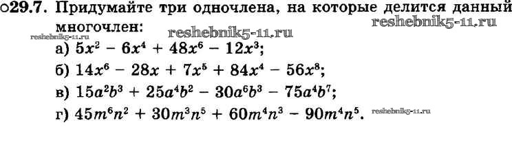 Готовая домашняя работа с ответами по Алгебре за 7 класс Мордкович, Александрова, Мишустина, Тульчинская Задачник Базовый уровень Часть 2 Мнемозина 2013 ФГОС - § 29. Деление многочлена на одночлен 7