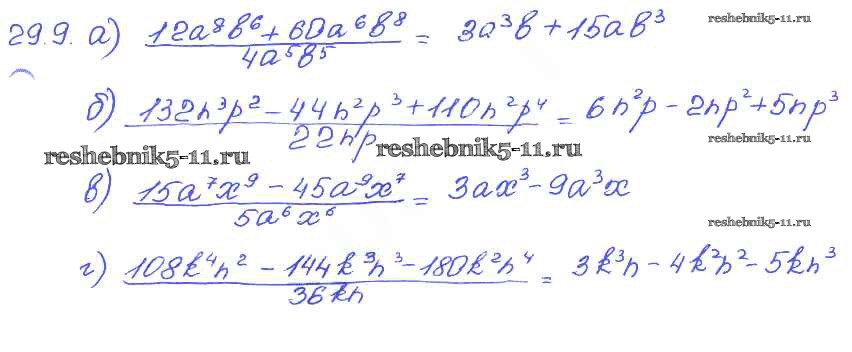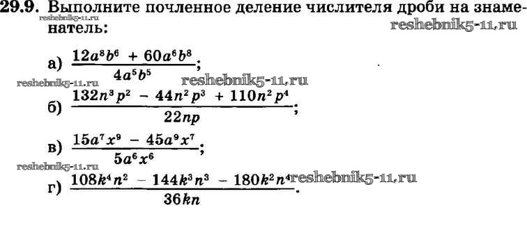 Готовая домашняя работа с ответами по Алгебре за 7 класс Мордкович, Александрова, Мишустина, Тульчинская Задачник Базовый уровень Часть 2 Мнемозина 2013 ФГОС - § 29. Деление многочлена на одночлен 9
