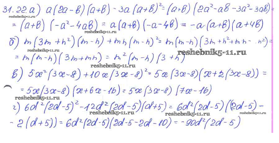 Готовая домашняя работа с ответами по Алгебре за 7 класс Мордкович, Александрова, Мишустина, Тульчинская Задачник Базовый уровень Часть 2 Мнемозина 2013 ФГОС - § 31. Вынесение общего множителя за скобки 22