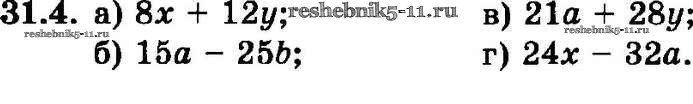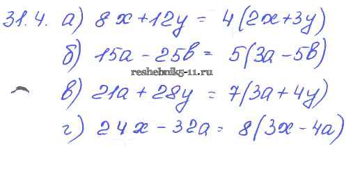 Готовая домашняя работа с ответами по Алгебре за 7 класс Мордкович, Александрова, Мишустина, Тульчинская Задачник Базовый уровень Часть 2 Мнемозина 2013 ФГОС - § 31. Вынесение общего множителя за скобки 4